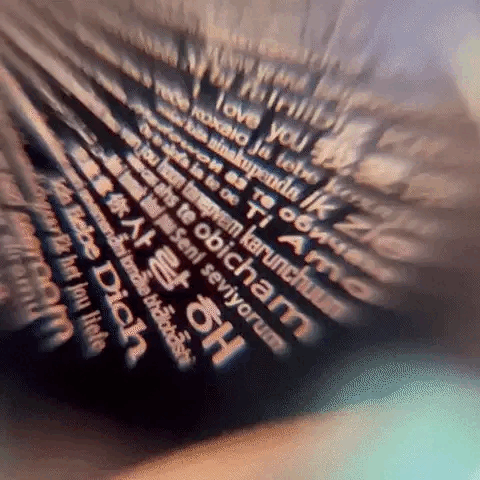 La proyección se activa al sostener el colgante a la luz o mirar a través de él, mostrando Te Amo en 100 idiomas.
